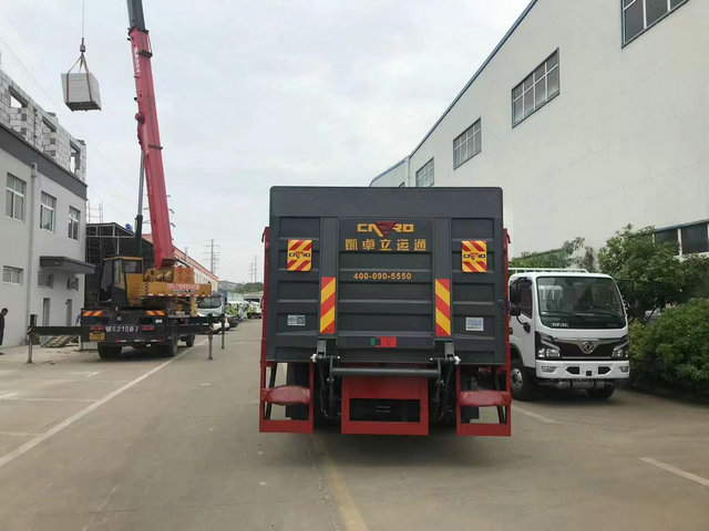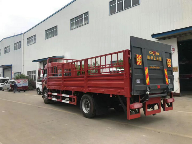 大家或許會問到這樣的車型比較大,在裝卸方面會不會不合適的呢,其實這樣的車型我們可以在后部安裝這樣的液壓尾板,那么液壓尾板進行升降工作無疑對于我們的裝卸有很好的輕松程度。