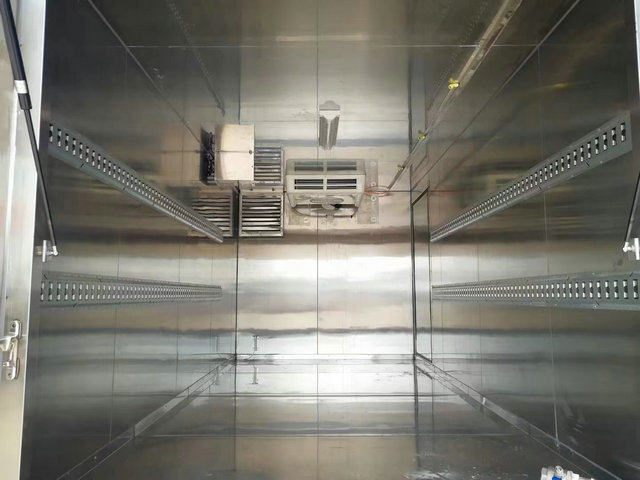 如圖我們展示的是貨廂內(nèi)部的配置,我們所展示的內(nèi)部為全不銹鋼廂體,可以很好的抑制細(xì)菌微生物的滋生,然后通過降低溫度和紫外線消毒燈等配置進(jìn)行對醫(yī)療廢物的細(xì)菌進(jìn)行一個(gè)全方面的消毒作用。