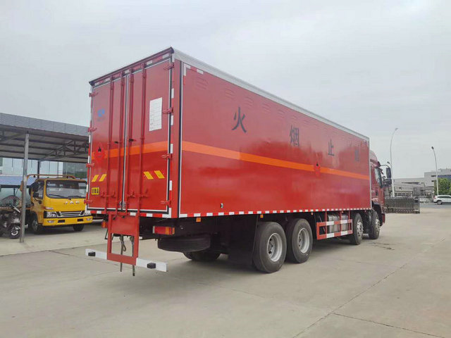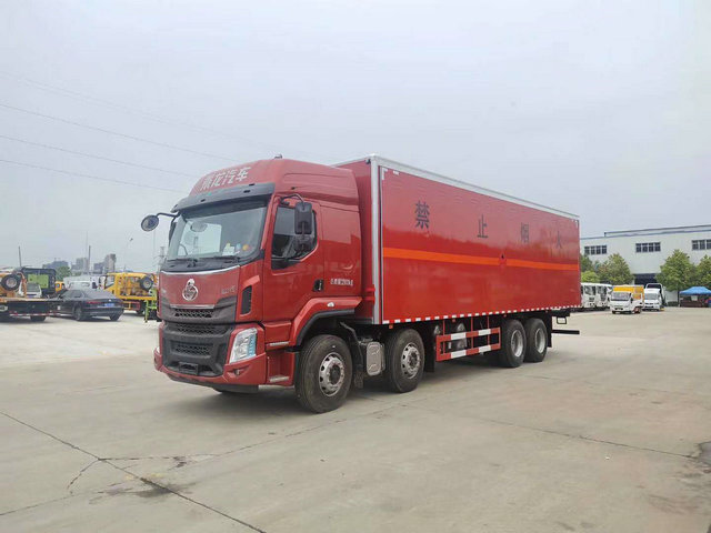 廂體配置:嚴(yán)格按照公告尺寸制作,外板采用1mm厚冷軋板有一次性成型的百葉窗,內(nèi)飾為導(dǎo)電性能良好的鋁板有透氣孔,內(nèi)襯為矩形管骨架牢靠穩(wěn)定,內(nèi)部填充為透氣防潮阻燃的擠塑板,四種材料經(jīng)現(xiàn)代工藝復(fù)合而成,廂體外部上下鋁合金型材包邊,底板和車廂前下部鋪橡膠皮,后門雙開,右側(cè)中部兩個雙開門,內(nèi)部有固定貨物的臥環(huán),車輛外部有靜電帶、滅火器、防火罩,車廂內(nèi)安裝煙霧報警器和門防盜報警器,嚴(yán)格按照國家危險品相關(guān)法規(guī)張貼。
