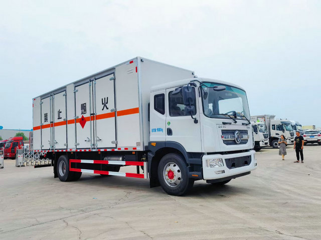 東風D9爆破器材運輸車底盤配置:廂體長寬高:6800X2400X2400(MM),核載噸位:9.99噸,車輛外部采用專用冷軋鋼板,內(nèi)部采用鋁板,夾層復合阻燃材料,嚴格控制防火阻燃性,車廂內(nèi)以及邊部安裝的有煙霧報警器以及固定裝置,廂體貼‘爆破器材’危險品標識。