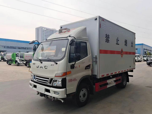 江淮駿鈴爆破器材運輸車底盤配置:廂體長寬高:4100X2100X1800(MM),核載噸位:3760(KG),用冷軋鋼板,內(nèi)部采用鋁板,夾層復(fù)合阻燃材料,嚴格控制防火阻燃性,車廂內(nèi)以及邊部安裝的有煙霧報警器以及固定裝置,廂體貼‘爆破器材’危險品標識。