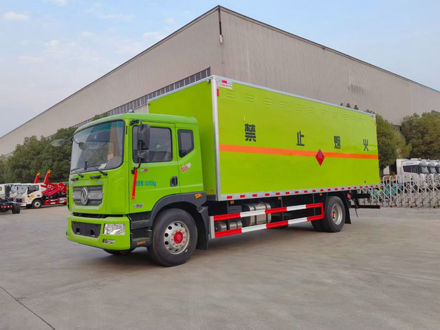東風(fēng)D9瓶裝氣體運(yùn)輸車上裝配置:廂體長(zhǎng)寬高:6200X2300X600(MM),車輛外部采用專用冷軋鋼板,內(nèi)部采用鋁板,夾層復(fù)合阻燃材料,嚴(yán)格控制防火阻燃性,車廂內(nèi)以及邊部安裝的有煙霧報(bào)警器以及固定裝置,廂體貼‘易燃?xì)怏w’危險(xiǎn)品標(biāo)識(shí)。