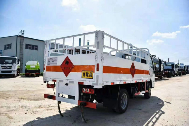 整車運輸介質:該車運輸具有獨立容器(瓶)包裝的易燃氣體:GB 12268-2012《危險貨物品名表》第2.1項的液化石油氣,壓縮天然氣,乙炔,乙烷,丙烷,丁烷,氬氣,異丁烷,丁烯,甲烷,丙烯,環(huán)丁烷,丙二烯,二甲醚,甲乙醚,打火機或打火機加油器(裝有易燃氣體),氫;2.2項中的壓縮氧氣,壓縮氮氣,二氧化碳氣瓶,危險品標志牌選掛2.1類易燃氣體警示牌或掛2.2類非易燃無毒氣體警示牌.