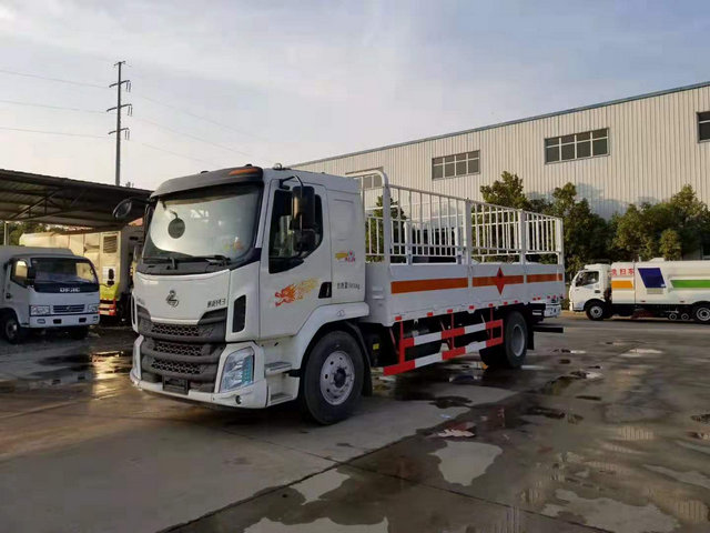 柳汽乘龍氣瓶運輸車(板長6.8米),關(guān)于危險品的嚴格配置,缺一不可,我公司針對于危險品運輸車的安全性。