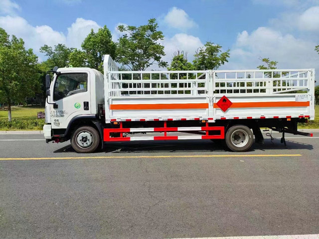 大運(yùn)氣瓶運(yùn)輸車底盤配置:欄板長寬高:5150X2320X600(MM),荷載噸位:6.9噸,車輛外部采用專用冷軋鋼板,內(nèi)部采用鋁板,夾層復(fù)合阻燃材料,嚴(yán)格控制防火阻燃性,車廂內(nèi)以及邊部安裝的有煙霧報(bào)警器以及固定裝置,廂體貼‘易燃?xì)怏w’危險(xiǎn)品標(biāo)識(shí)。