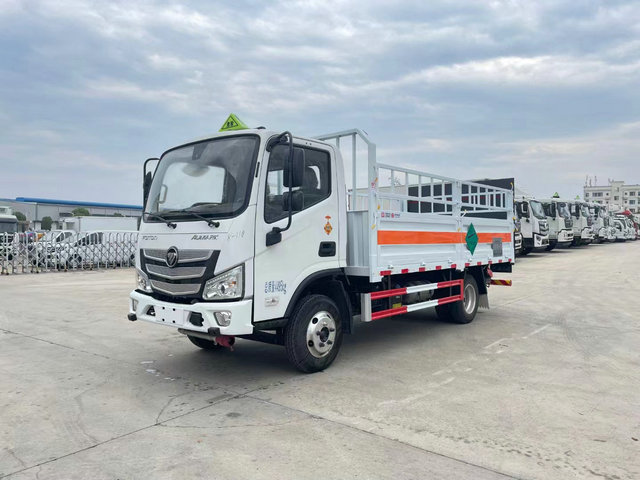 福田歐馬可氣瓶運輸車上裝配置:欄板長寬高:4100X2050X550(MM),車輛外部采用專用冷軋鋼板,內部采用鋁板,夾層復合阻燃材料,嚴格控制防火阻燃性,車廂內以及邊部安裝的有煙霧報警器以及固定裝置,廂體貼‘易燃氣體’危險品標識。