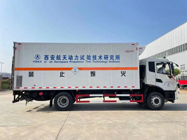 東風(fēng)天錦易燃液體運(yùn)輸車(chē)上裝配置:廂體長(zhǎng)寬高:6800X2400X2000(MM),荷載噸位:10500(KG),車(chē)輛外部采用專(zhuān)用冷軋鋼板,內(nèi)部采用鋁板,夾層復(fù)合阻燃材料,嚴(yán)格控制防火阻燃性,車(chē)廂內(nèi)以及邊部安裝的有煙霧報(bào)警器以及固定裝置,廂體貼‘易燃液體’危險(xiǎn)品標(biāo)識(shí)。