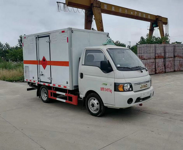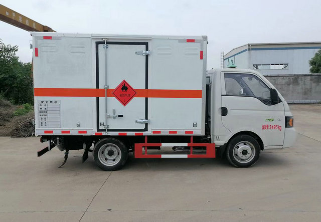 江淮X5易燃液體運輸車上裝配置:廂體長寬高:3000X1675X1700(MM),荷載噸位:1265(KG),車輛外部采用專用冷軋鋼板,內(nèi)部采用鋁板,夾層復(fù)合阻燃材料,嚴(yán)格控制防火阻燃性,車廂內(nèi)以及邊部安裝的有煙霧報警器以及固定裝置,廂體貼‘易燃液體’危險品標(biāo)識。