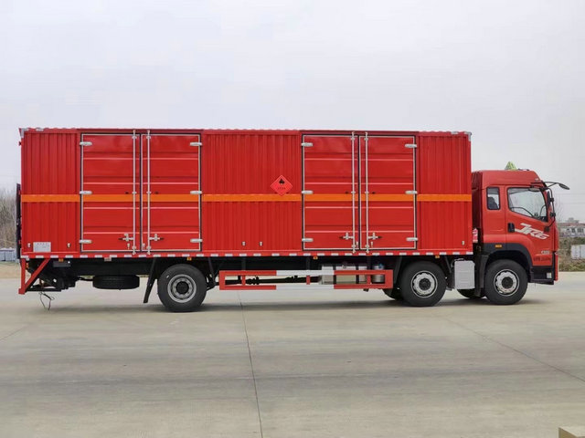 解放JK6帶臥鋪易燃液體運輸車上裝配置:廂體長寬高:6200X2400X2400(MM),荷載噸位:10500(KG),車輛外部采用專用冷軋鋼板,內(nèi)部采用鋁板,夾層復合阻燃材料,嚴格控制防火阻燃性,車廂內(nèi)以及邊部安裝的有煙霧報警器以及固定裝置,廂體貼‘易燃液體’危險品標識。