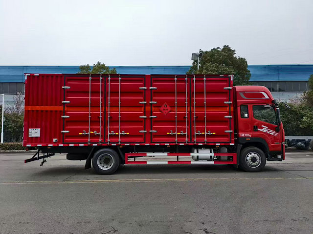 一汽解放易燃液體運(yùn)輸車上裝配置:廂體長(zhǎng)寬高:6800X2400X2400(MM),車輛外部采用專用冷軋鋼板,內(nèi)部采用鋁板,夾層復(fù)合阻燃材料,嚴(yán)格控制防火阻燃性,車廂內(nèi)以及邊部安裝的有煙霧報(bào)警器以及固定裝置,廂體貼‘易燃液體’危險(xiǎn)品標(biāo)識(shí)。