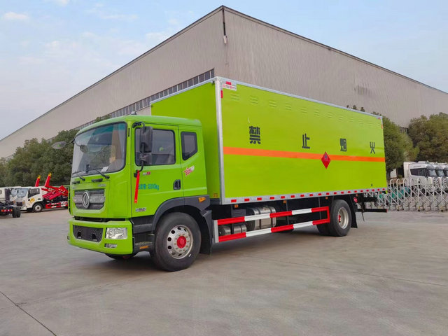 東風(fēng)D9危險(xiǎn)品廢物輸車上裝配置:廂體長(zhǎng)寬高:6850X2400X2000(MM),荷載噸位:10.4噸,車輛外部采用專用冷軋鋼板,內(nèi)部采用鋁板,夾層復(fù)合阻燃材料,嚴(yán)格控制防火阻燃性,車廂內(nèi)以及邊部安裝的有煙霧報(bào)警器以及固定裝置,廂體貼‘雜項(xiàng)’危險(xiǎn)品標(biāo)識(shí)。