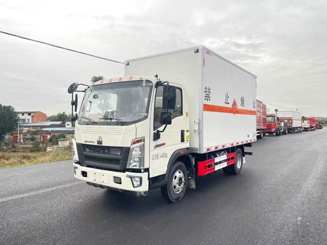 重汽豪沃爆破器材運(yùn)輸車底盤配置:廂體長寬高:4200X2100X2400(MM),核載噸位:1050(KG),用冷軋鋼板,內(nèi)部采用鋁板,夾層復(fù)合阻燃材料,嚴(yán)格控制防火阻燃性,車廂內(nèi)以及邊部安裝的有煙霧報(bào)警器以及固定裝置,廂體貼‘爆破器材’危險(xiǎn)品標(biāo)識。